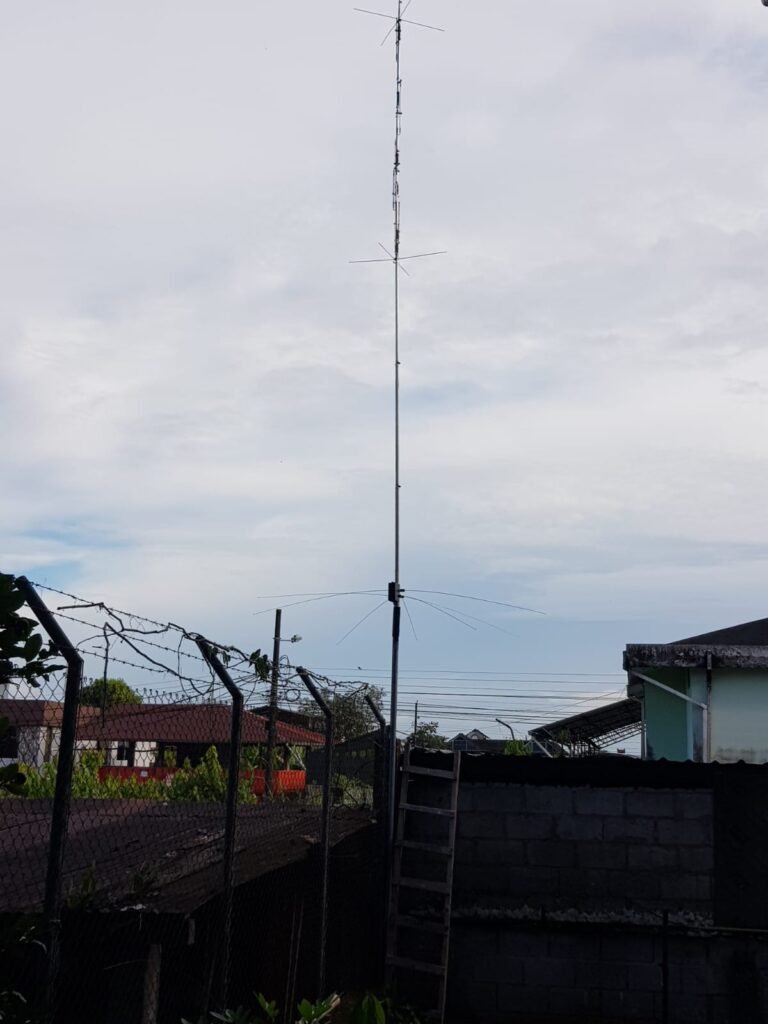 As of February 2026 I now have a permanent HF Vertical Antenna at the back of my house. It is a Cushcraft R7, and so it is good for 40m, 30m, 20m, 17m, 15m, 12m & 10m. I am currently experimenting with FT8 to see who can hear me and who I can hear, and sometimes we even make contact. I am pleased that the surrounding buildings do not seem to be blocking my antennas takeoff in any particular direction.